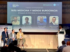 A pressão constante sobre os serviços de saúde, juntamente com a escassez de pessoal, está impulsionando cada vez mais a adoção de soluções baseadas em Inteligência Artificial. A rápida disseminação do ChatGPT é um exemplo concreto. Na América Latina, cerca de 55% dos profissionais de saúde já utilizam ferramentas de IA em seu trabalho, especialmente soluções de IA generativa. Uma tendência que evidencia uma necessidade clara: contar com ferramentas capazes de reduzir tarefas repetitivas e otimizar os processos.